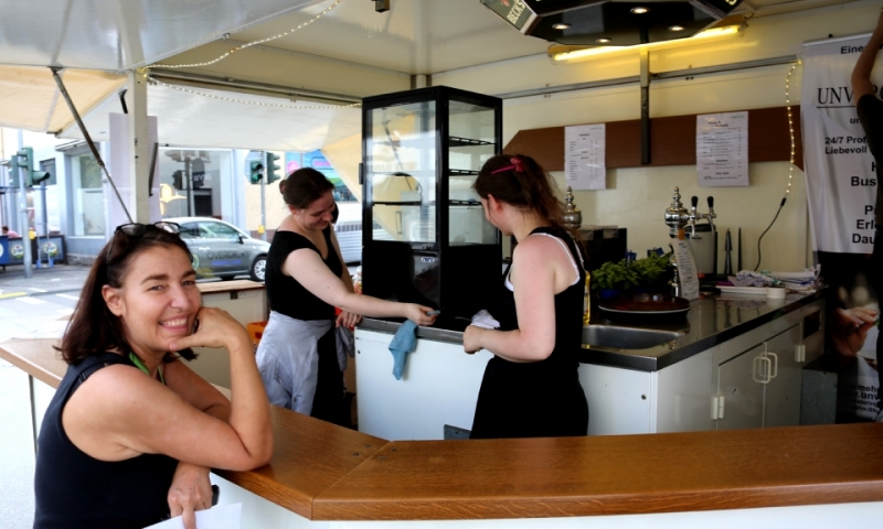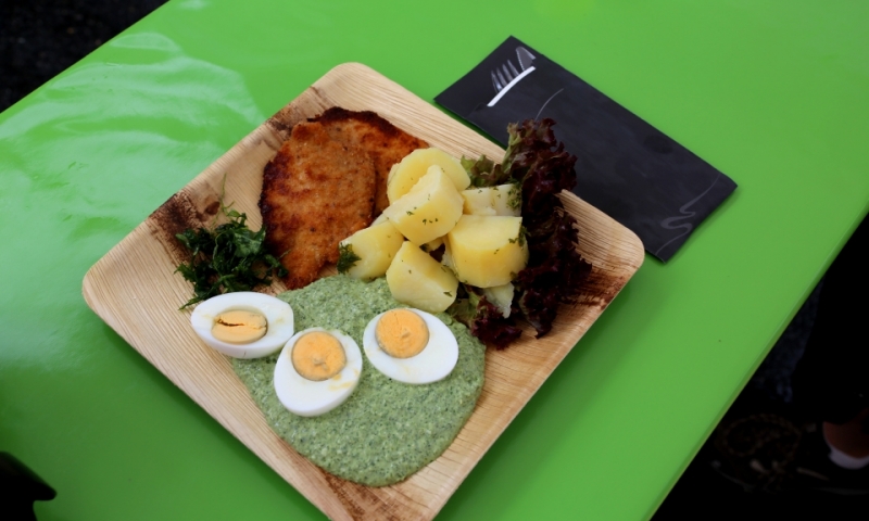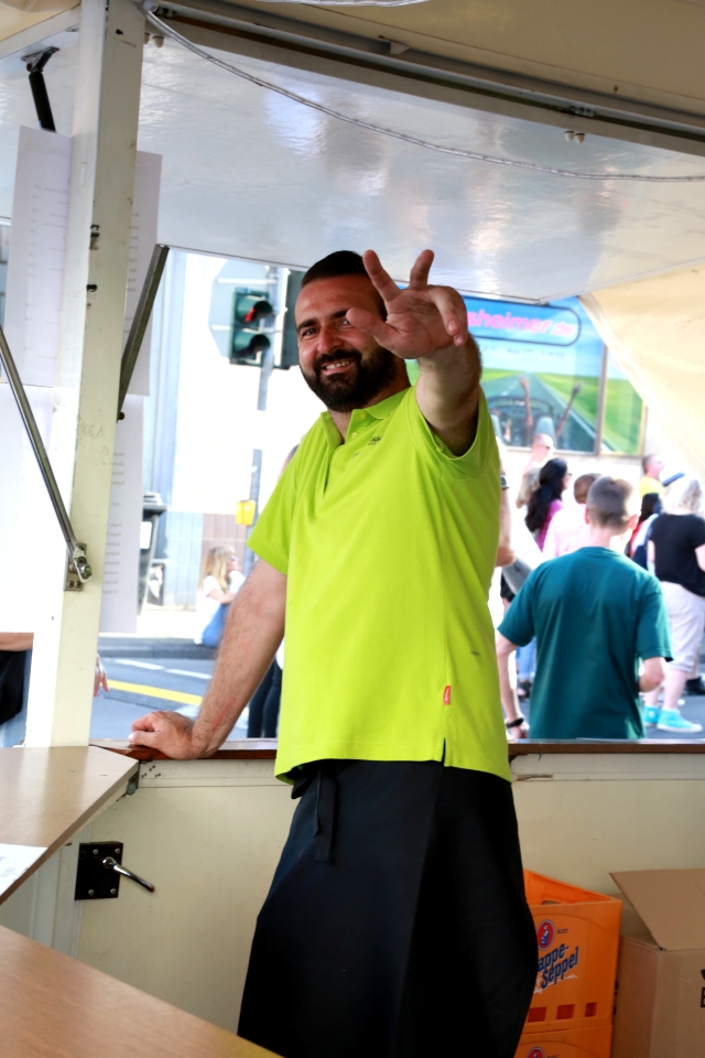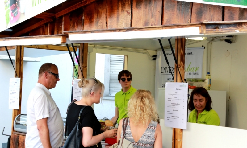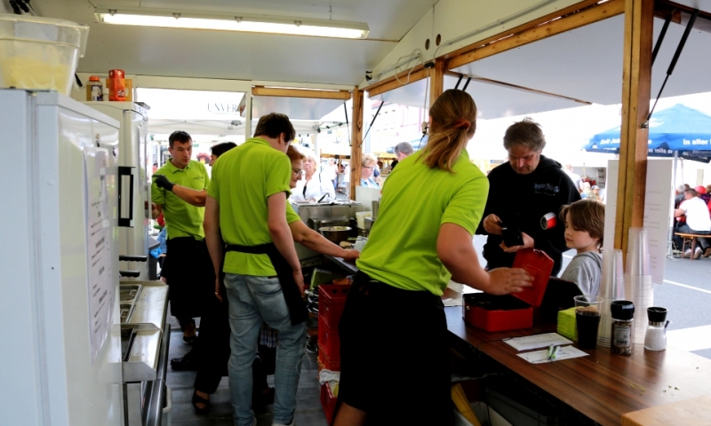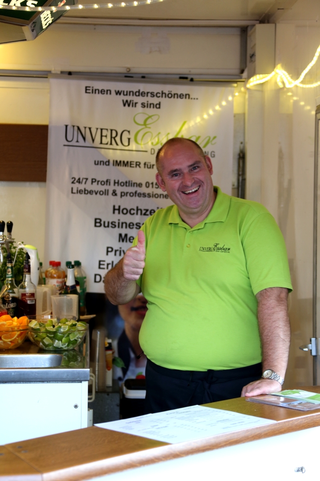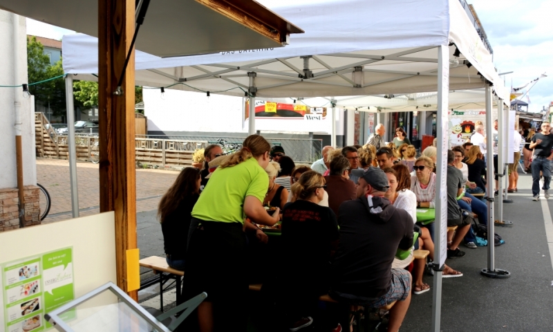 Sitzmögklichkeiten waren vorhanden und es wurde der Tisch abgeräumt und gefragt ob alles zur Zufriedenheit war. Und das auf einem Straßenfest: Hut ab!