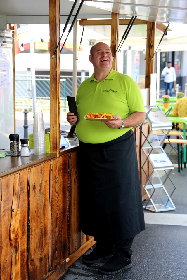 Der gängige und dennoch günstige Preis von 5.50€ ist fast unschlagbar für diese Qualität. Die Wurst absolut super lecker…Die Soße, der Knaller und als I-Tüpfelchen der Rucola on Top. Erstklassig!! Die Pommes super gewürzt, cross & knusprig und meines Erachtens nach in einem wunderbaren Öl/Fett fritiert. Das ganze zubereitet von einer freundlichen und herzlichen dunkelhaarigen Damen und serviert von einem höchst motivierten blonden sehr jungen Mann.